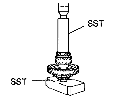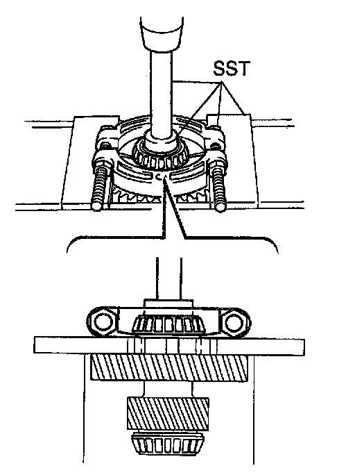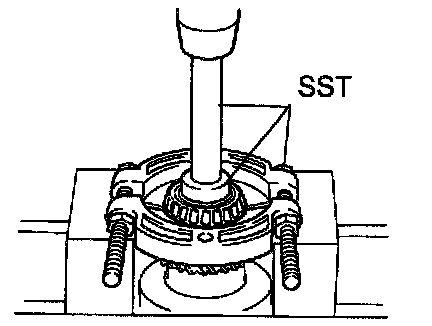 Using SST and a press, remove the tapered roller bearing.