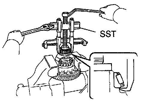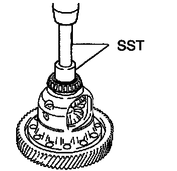 Using SST, remove the tapered roller bearing RH.
