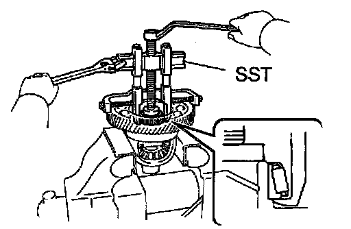 Using SST, remove the tapered roller bearing LH.