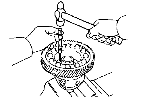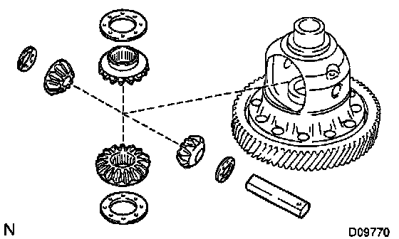 b. Remove the pinion shaft, 2 pinions, 2 pinion thrust washers, 2 side gears and 2 side gear thrust washers from the case.