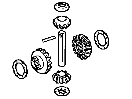 b. Install the 2 side gears, 2 pinions and 4 thrust washers to the case.