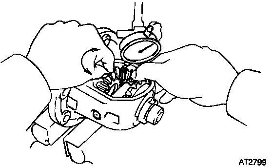 Measure the side gear backlash while pushing one pinion gear toward the case.