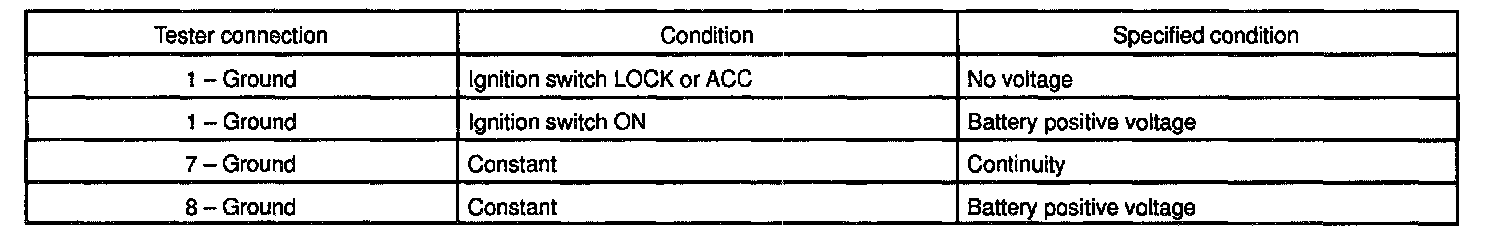 INSPECT DEFOGGER SWITCH CIRCUITDisconnect the connector from the switch and inspect the connector on wire harness side, as shown in the chart.
