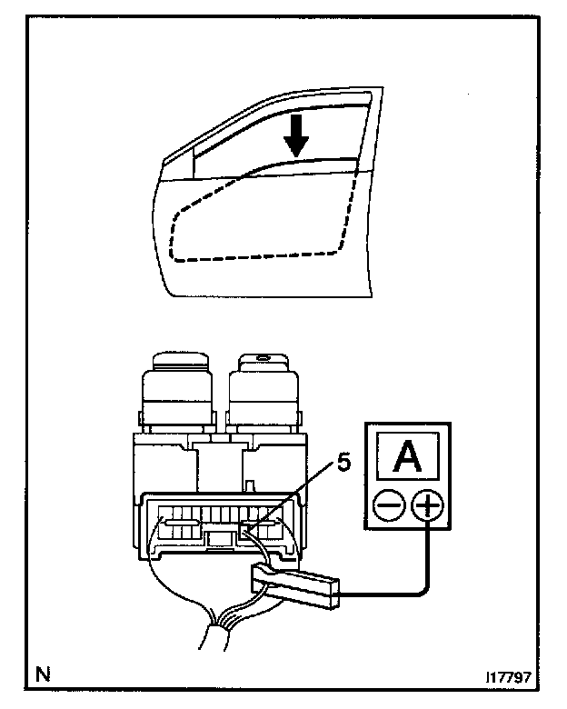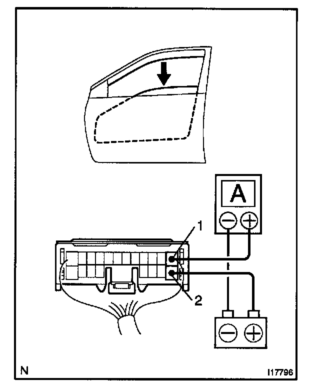 2. INSPECT ONE TOUCH POWER WINDOW SYSTEM/ CURRENT OF CIRCUIT (Using an ammeter with a current-measuring probe)