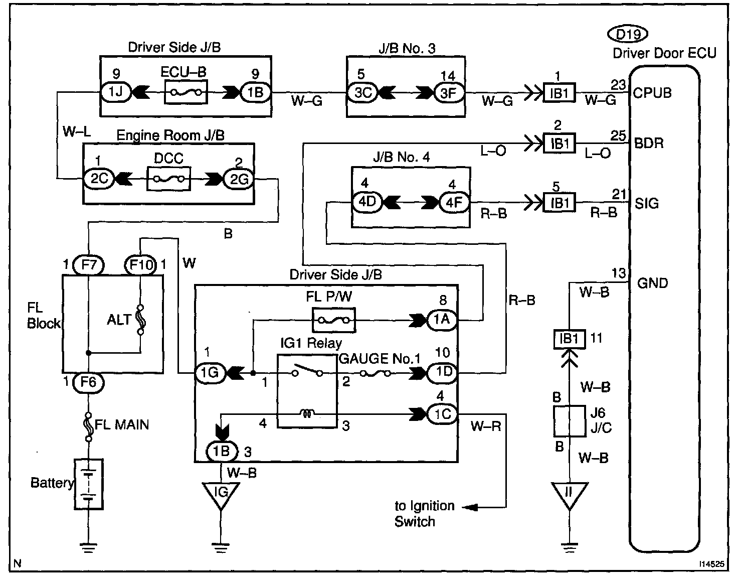 This circuit provides power to operate the driver door ECU.