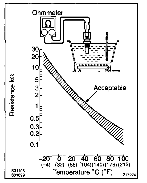 Coolant Temperature Sensor/Switch (For Computer): Testing and Inspection