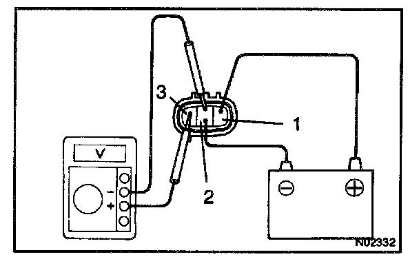d. Check that there is voltage change from approx. 0 V to 11 V or more between terminals 2 and 3.