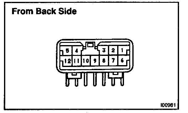c. Connect the connector to amplifier and inspect wire harness side connector from the back side, as shown in the chart.