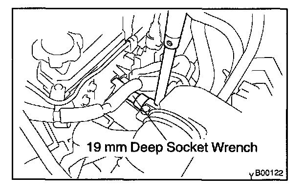 Using a 19 mm socket wrench, remove the sensor and gasket.