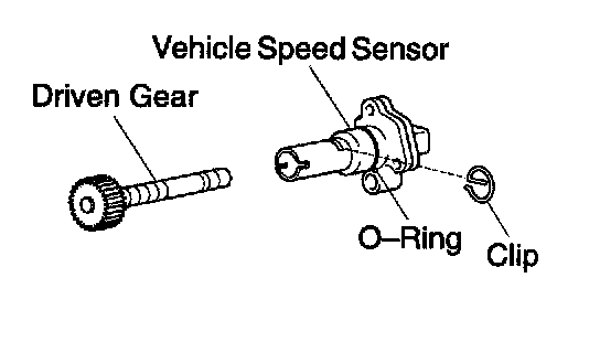 b. Remove the clip and the speedometer driven gear from the vehicle speed sensor.