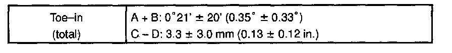 If the toe-in is not within the specified value, inspect and replace the suspension parts as necessary.