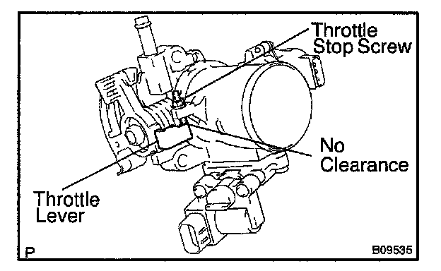 Check that there is no clearance between the throttle stop screw and throttle ever when the closed throttle position.