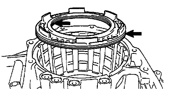 NOTICE: Stop the press when the O/D brake piston is lowered 1 - 2 mm (0.039 - 0.078 inch) from the snap ring groove, preventing the O/D brake piston from being deformed.