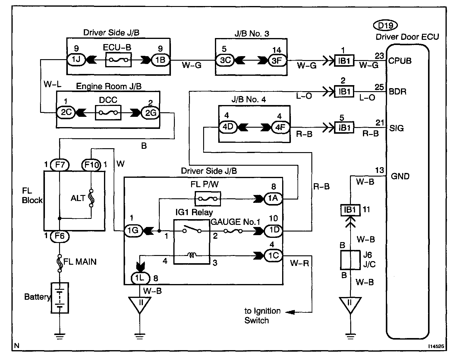 This circuit provides power to operate the driver door ECU.