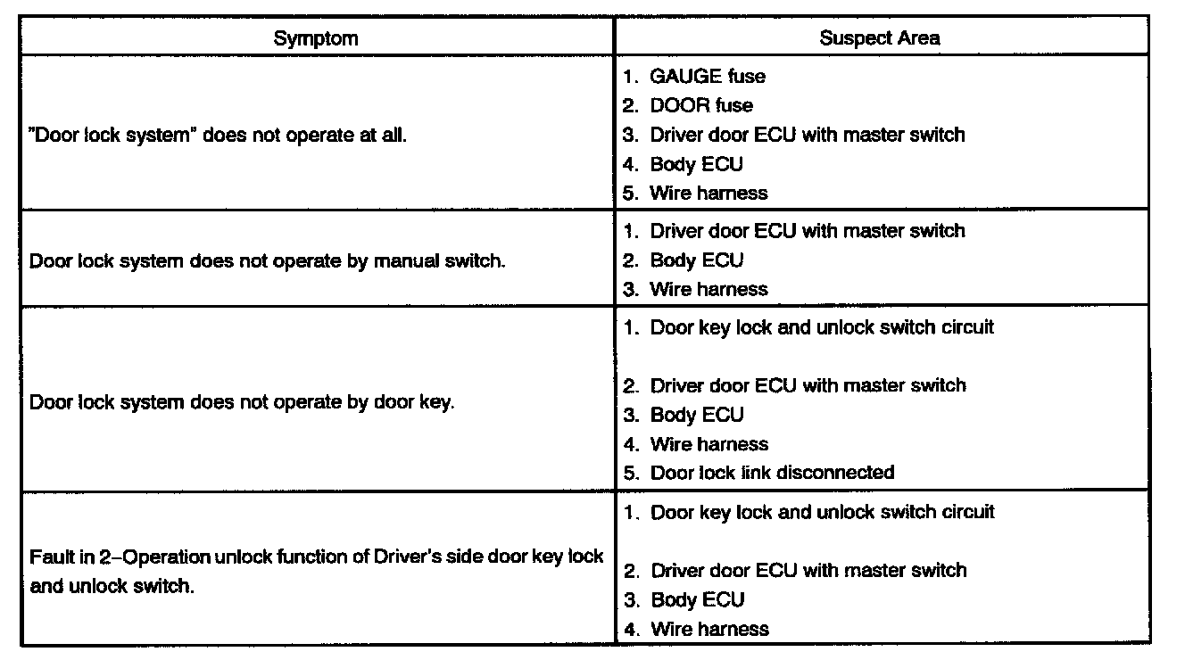 Problem Symptoms Table - Power Door Lock Control System Part 2: