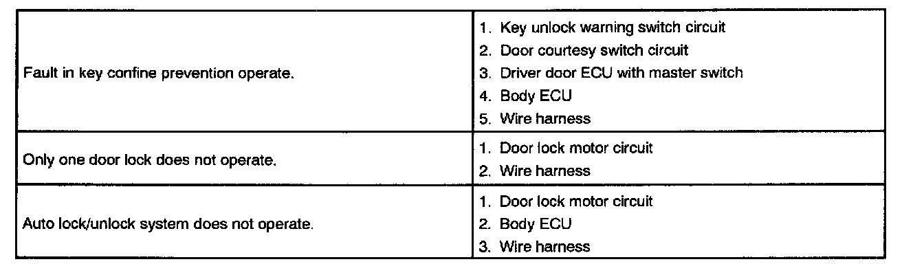 Problem Symptoms Table - Power Door Lock Control System Part 1:
