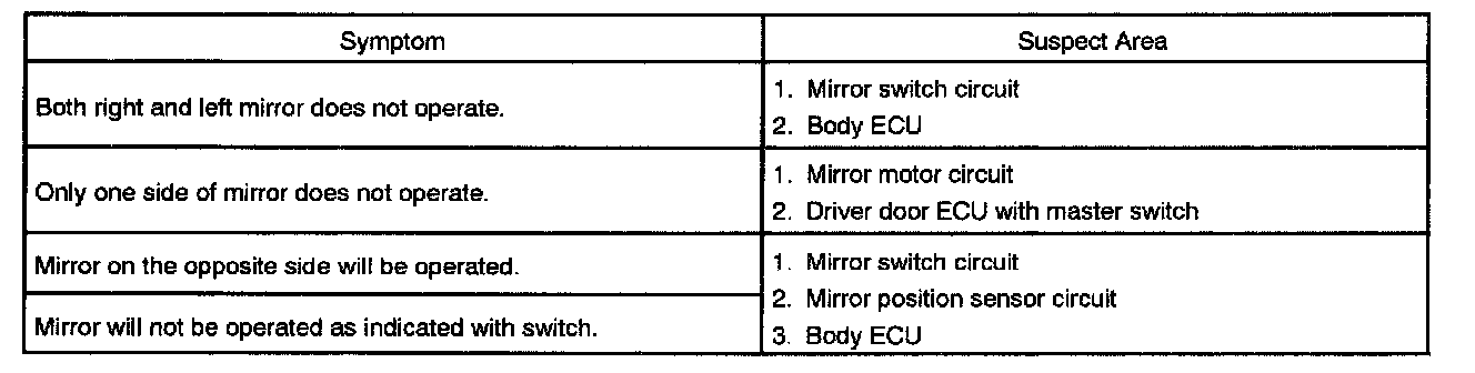 Problem Symptoms Table - Power Mirror Control System: