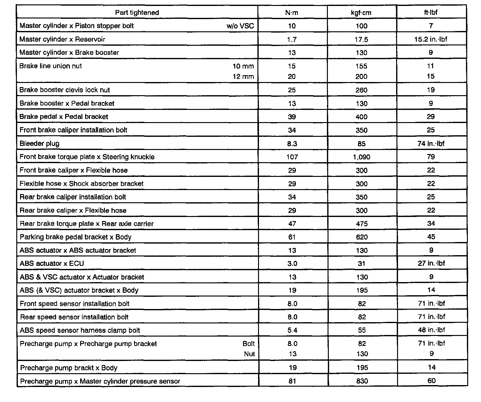 Torque Specifications