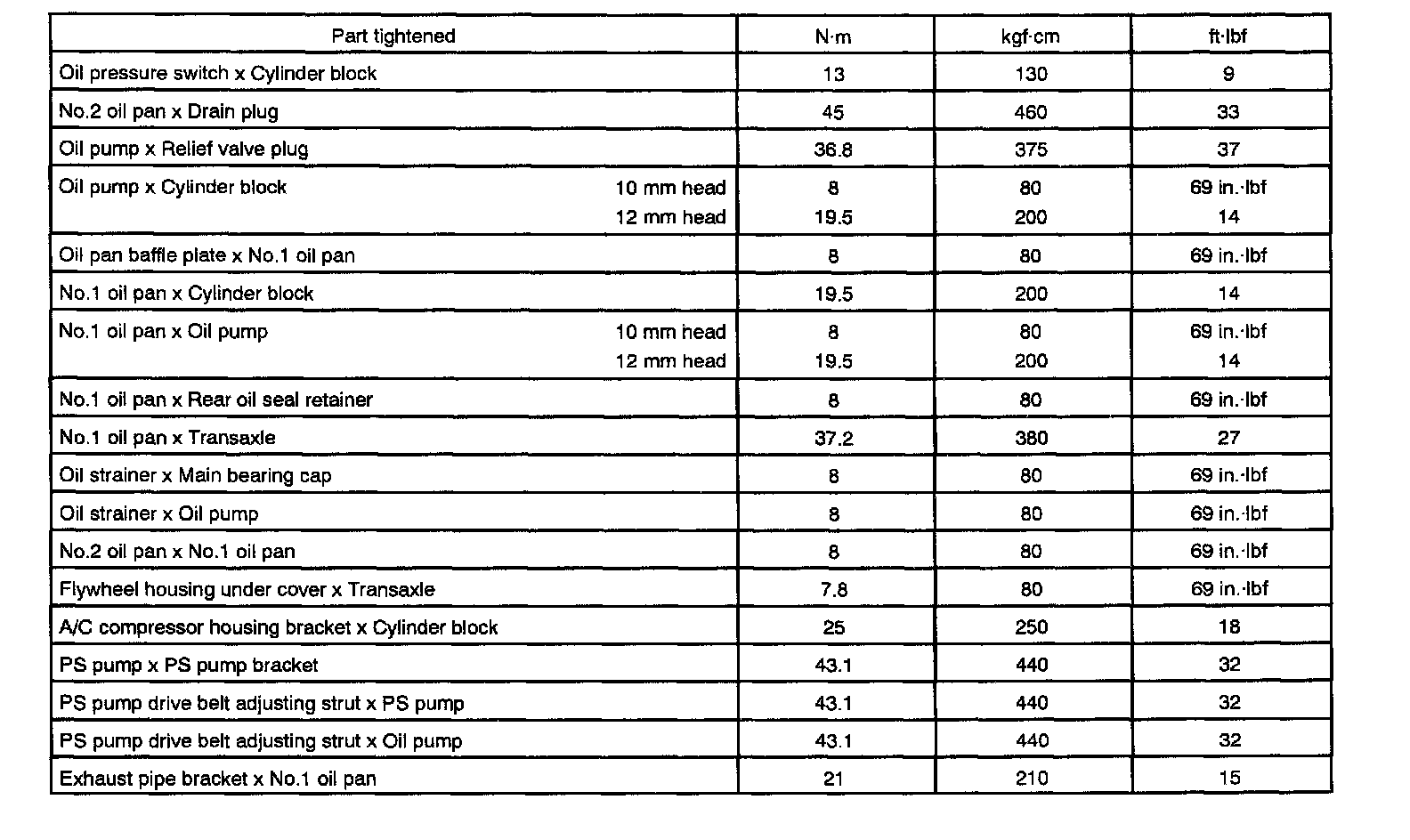 Torque Specifications