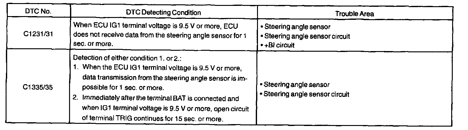 DTC C1335 STEERING ANGLE SENSOR CIRCUIT