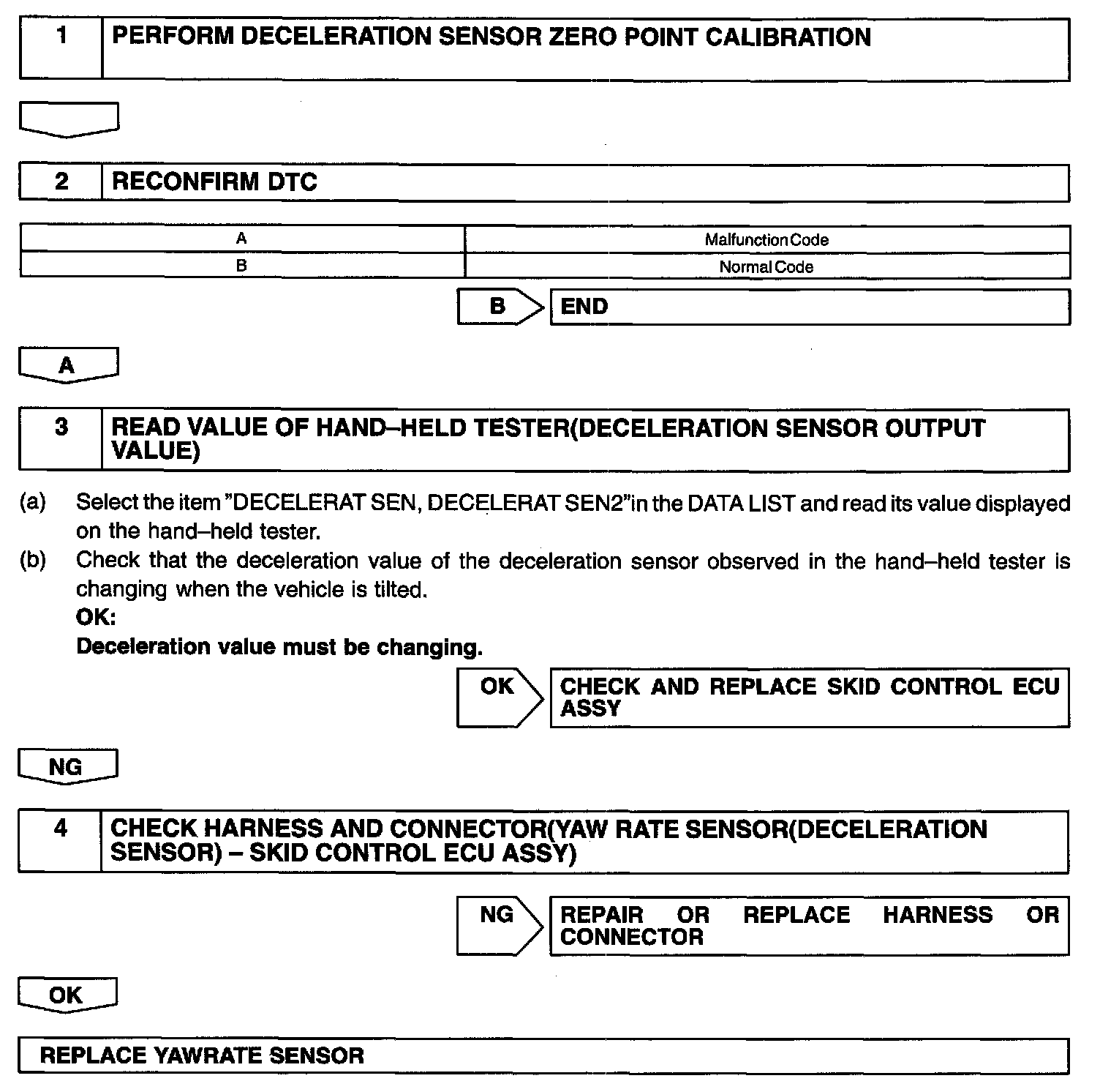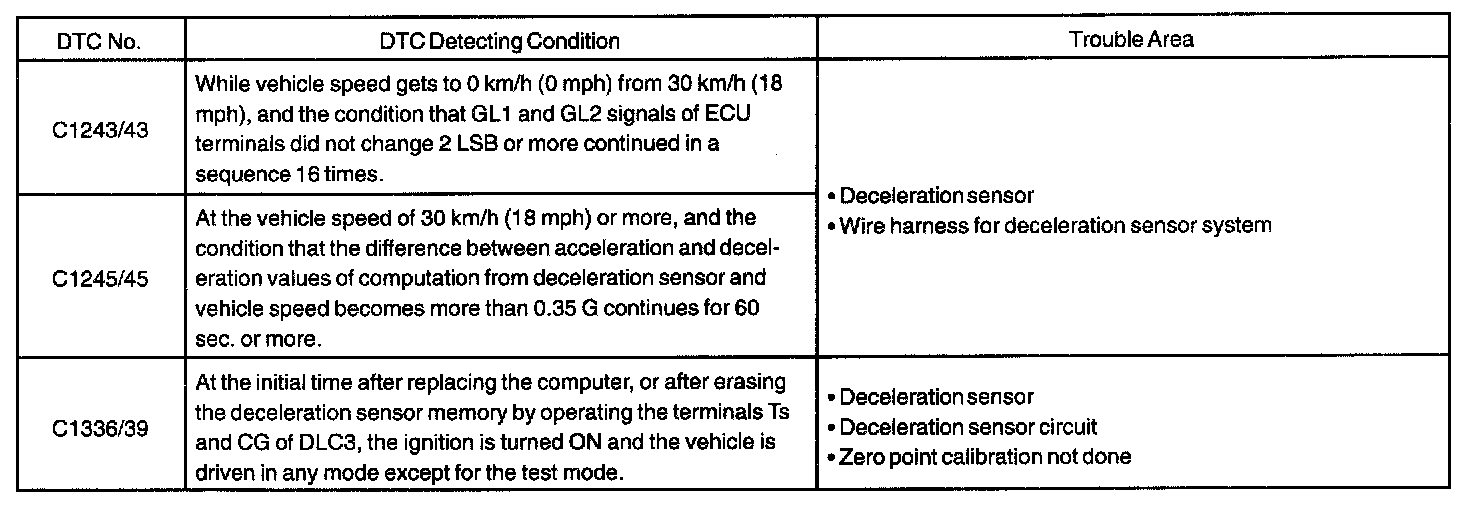 DTC C1336 ZERO POINT CALIBRATION OF DECELERATION SENSOR UNDONEDTC Detecting Condition: