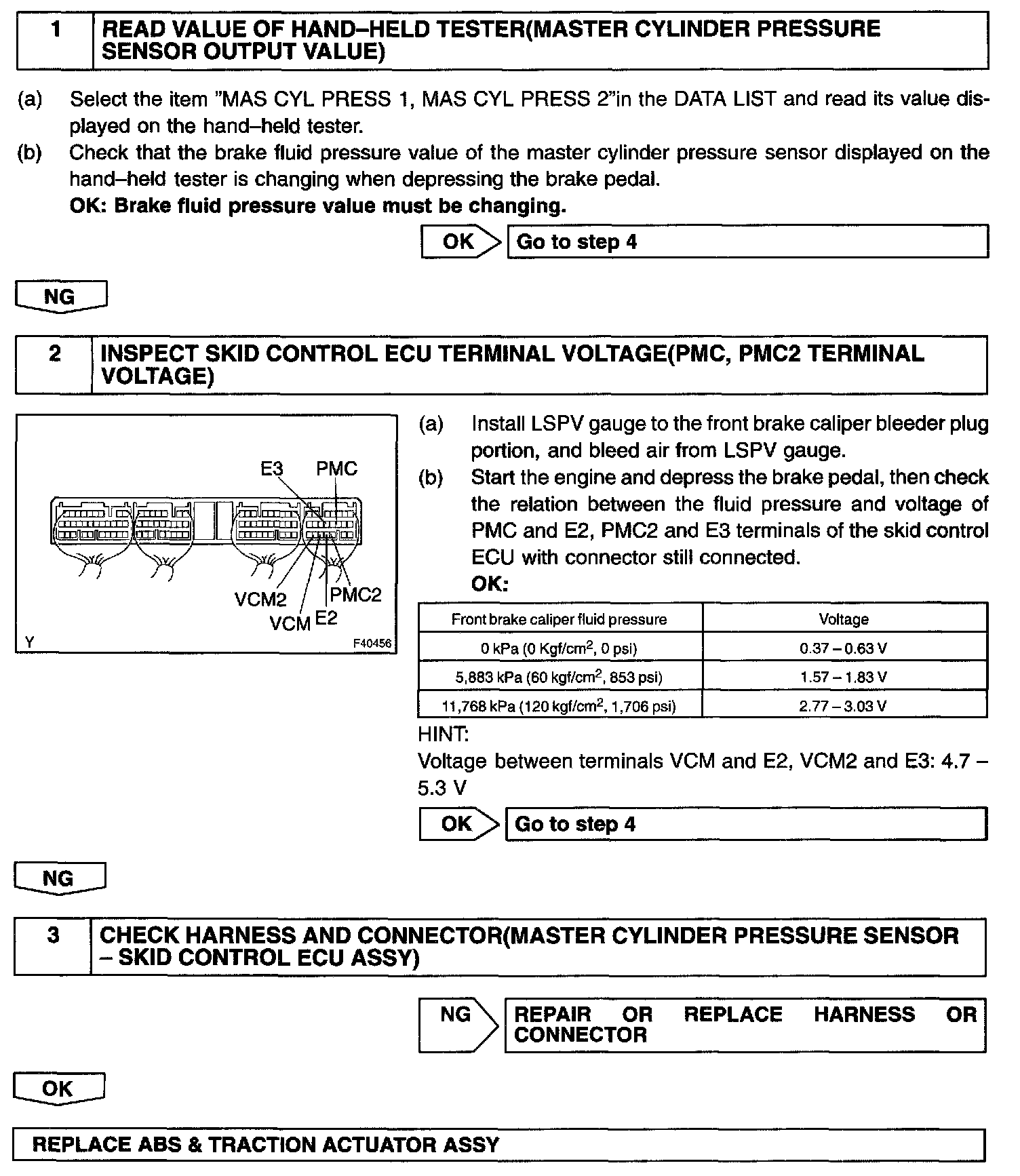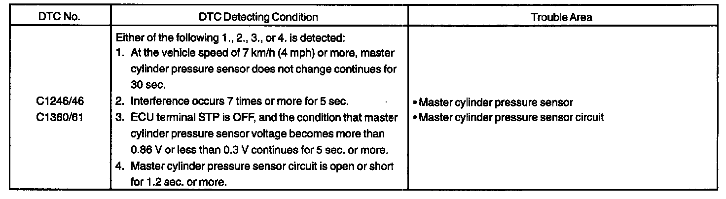 DTC C1360 MALFUNCTION IN COMPARATIVE MASTER CYLINDER PRESSURE SENSORDTC Detecting Condition: