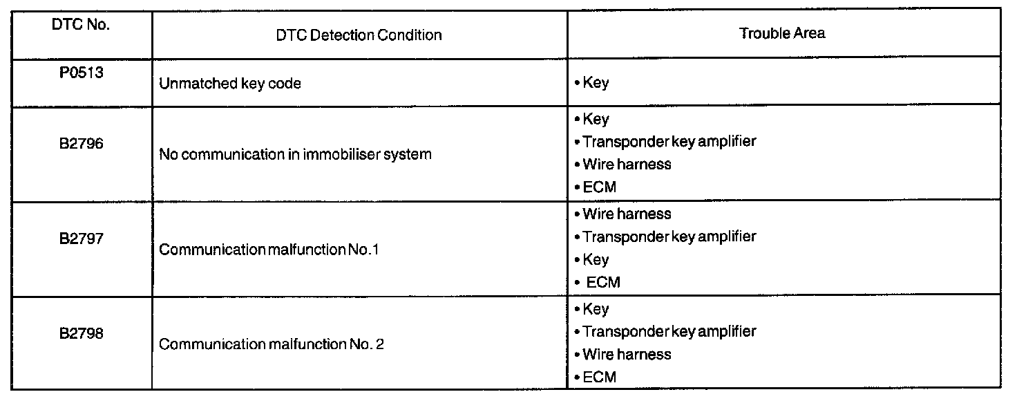 - Codes P0513, B2797 and B2798 may remain as a record that the immobilizer system has activated in the past.