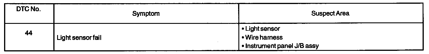 If a malfunction code is displayed during the DTC check, check the suspected area listed for that code in the table and proceed to the appropriate troubleshooting.