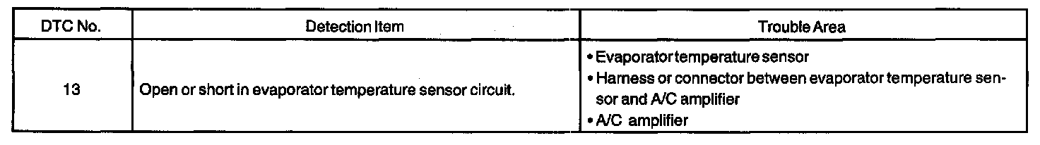DTC 13 EVAPORATOR TEMPERATURE SENSOR CIRCUITCIRCUIT DESCRIPTION