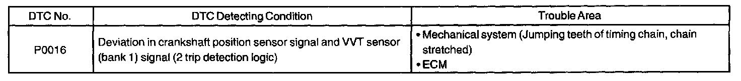 DTC P0016 CRANKSHAFT POSITION-CAMSHAFT POSITION CORRELATION (BANK 1 SENSOR A)CIRCUIT DESCRIPTION