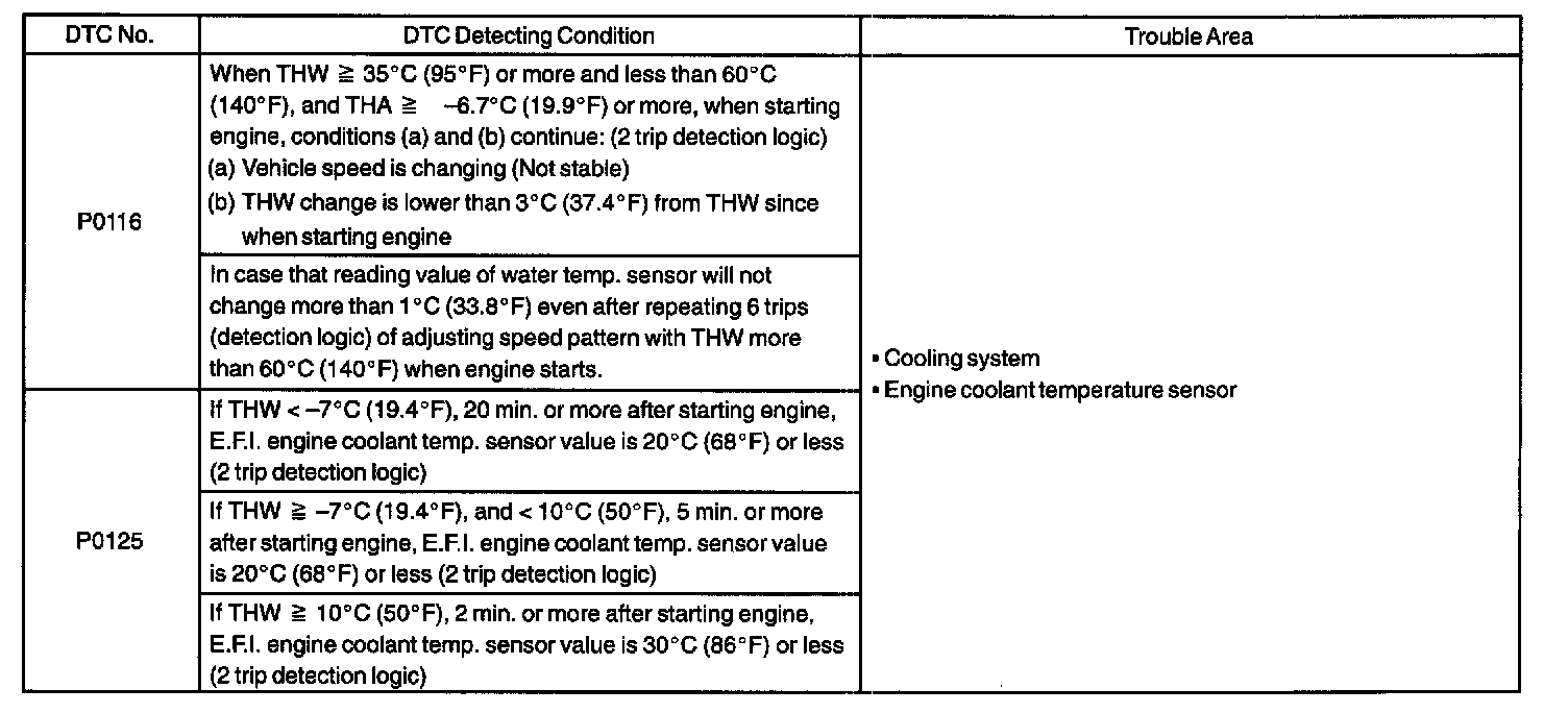 DTC P0116 ENGINE COOLANT TEMP. CIRCUIT RANGE/PERFORMANCE PROBLEMCIRCUIT DESCRIPTION