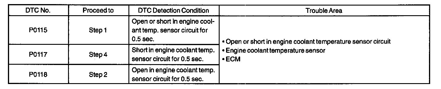 If the ECM detects the DTC P0115, P0117 or P0118, it operates the fail-safe functions in which the engine coolant temperature is assumed to be 80°C (176 °F).