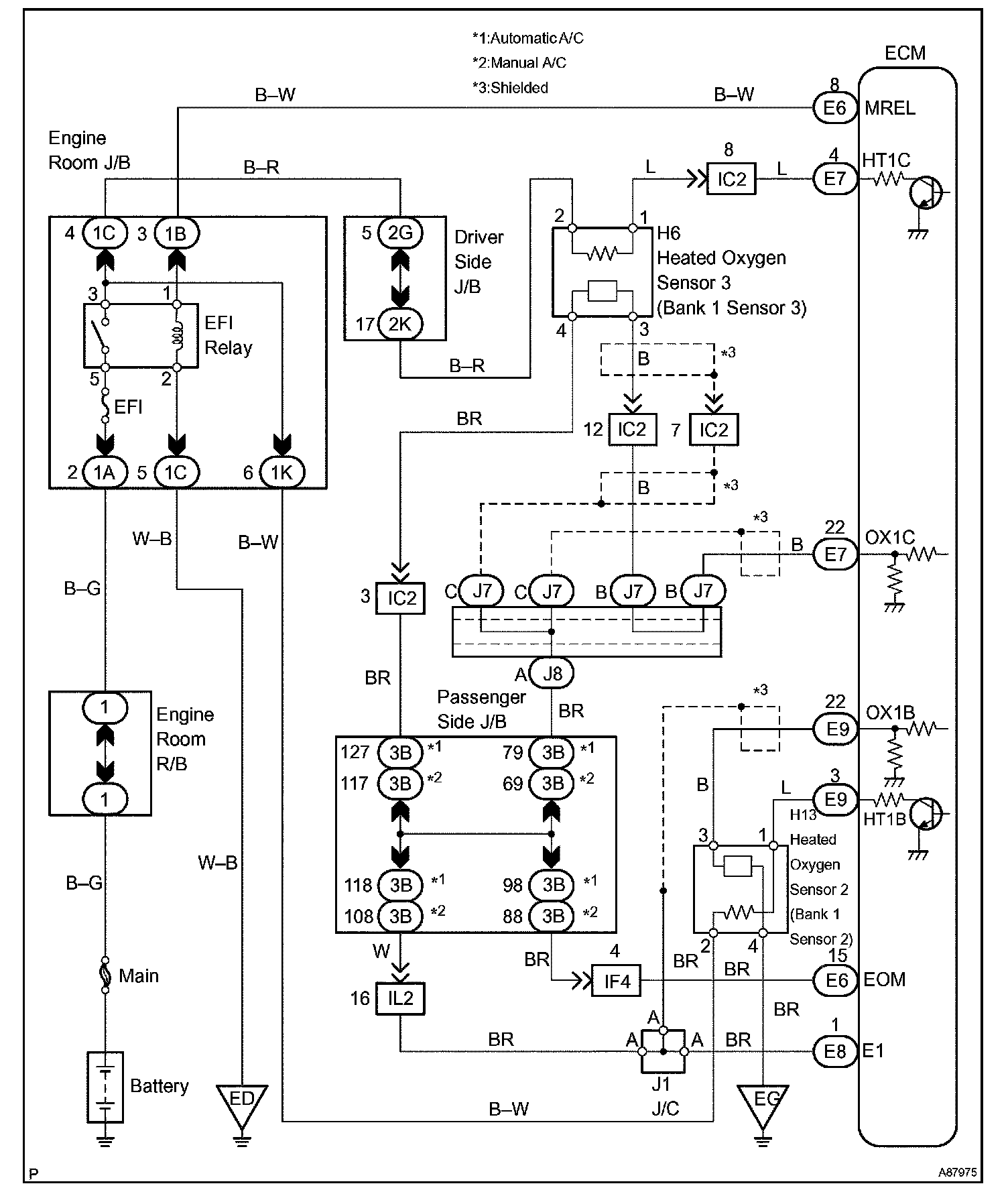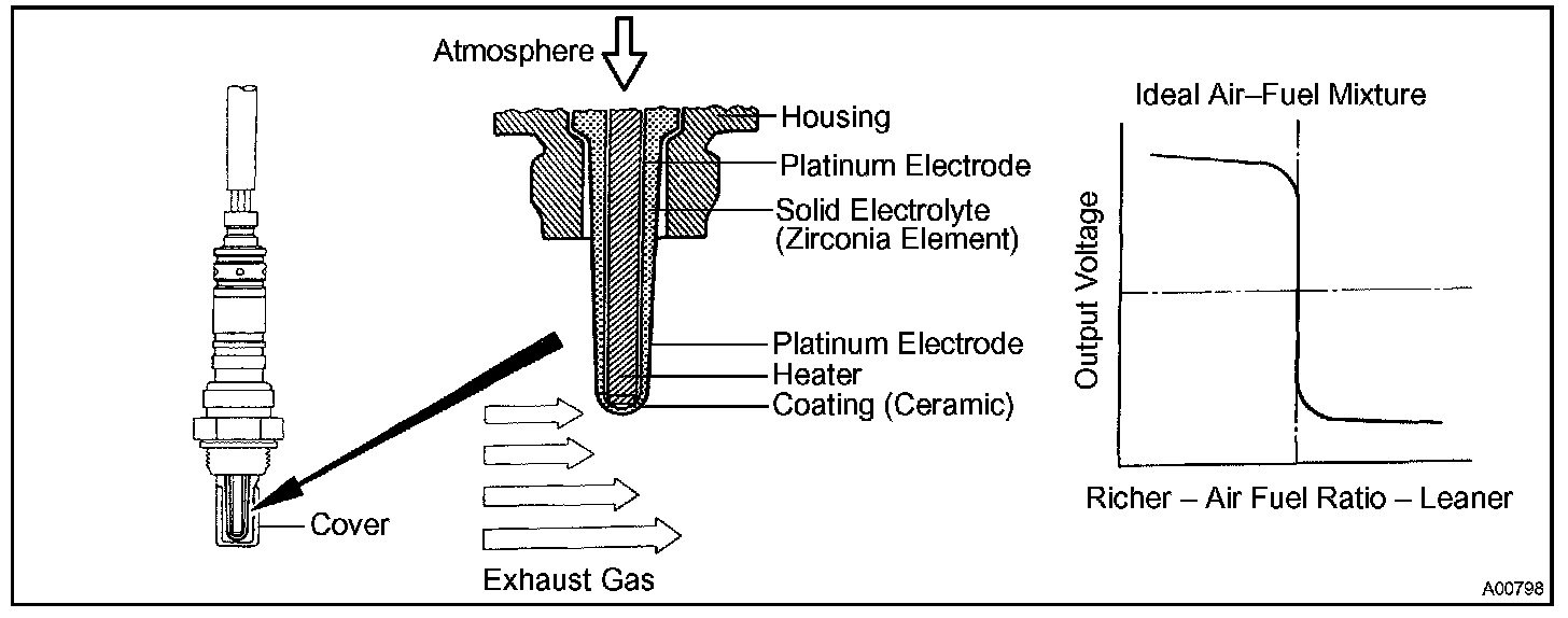 This sensor (heated oxygen sensor 3) is similar to the heated oxygen sensor 2, only difference between the two sensors is that this is not used to regulate the air-fuel ratio. The sensor is located after the rear catalyst (hydrocarbon (HC) absorptive catalyst) only to detect the deterioration in the catalyst.