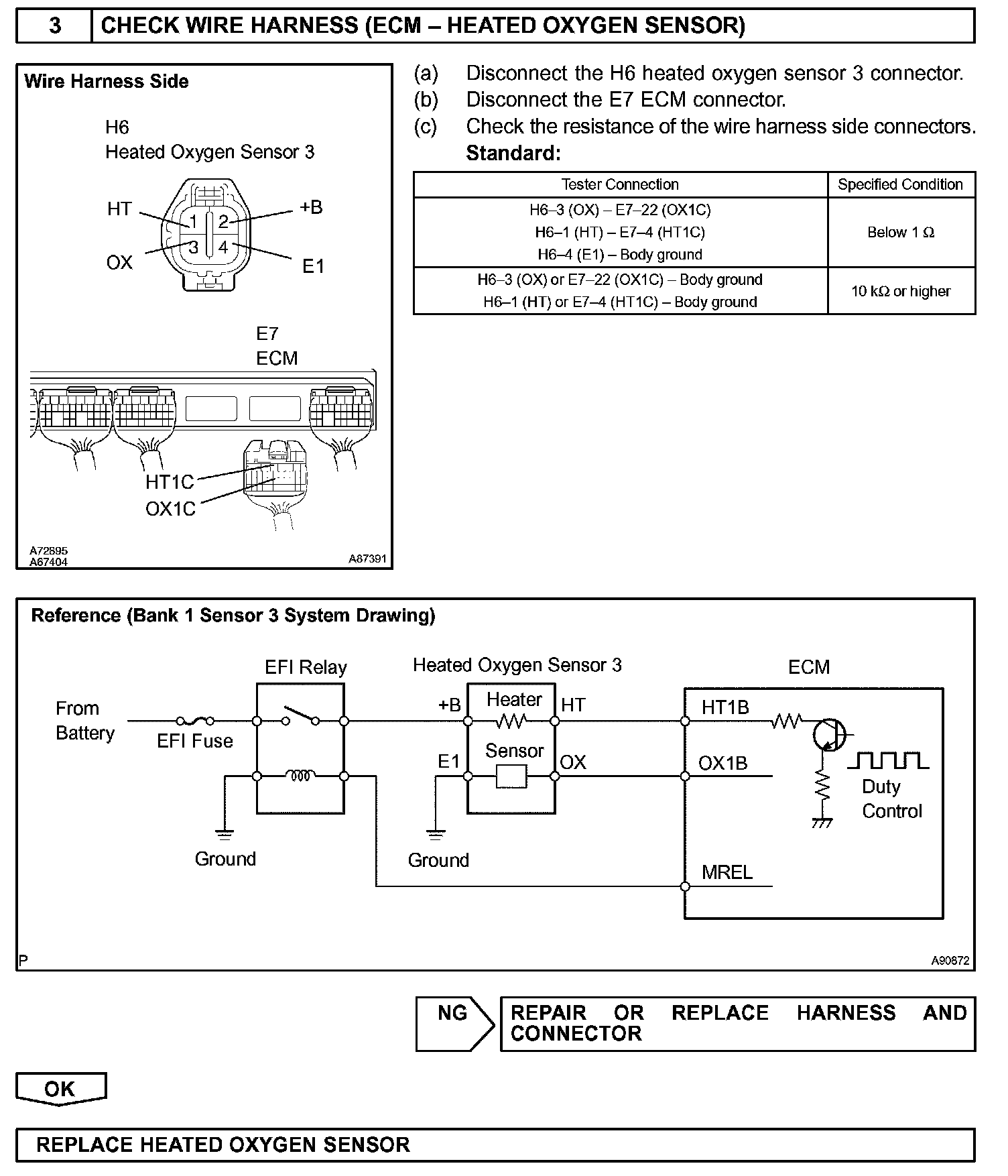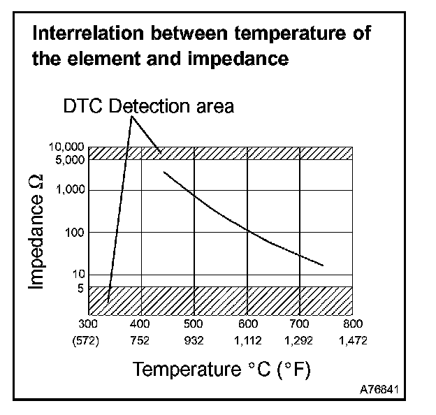 In a circuit inside the ECM, impedance* of the heated oxygen sensor 3 is measured by the ECM. The ECM determines that there is a malfunction in the sensor when the measured impedance deviates from the standard range.