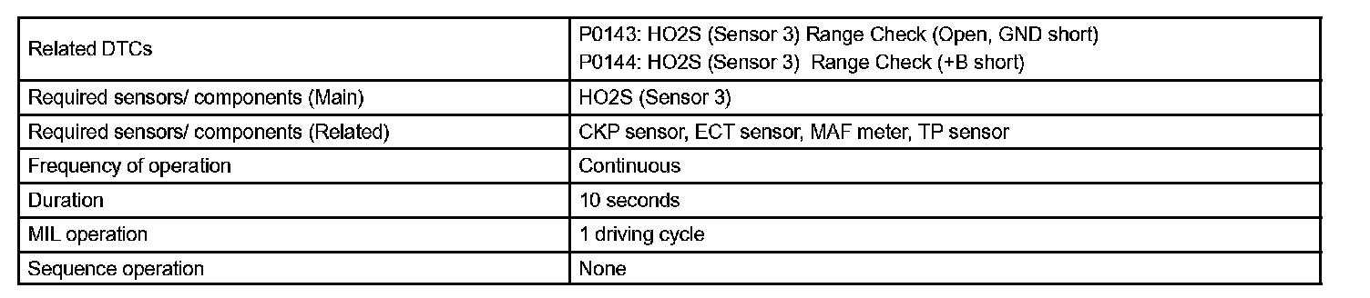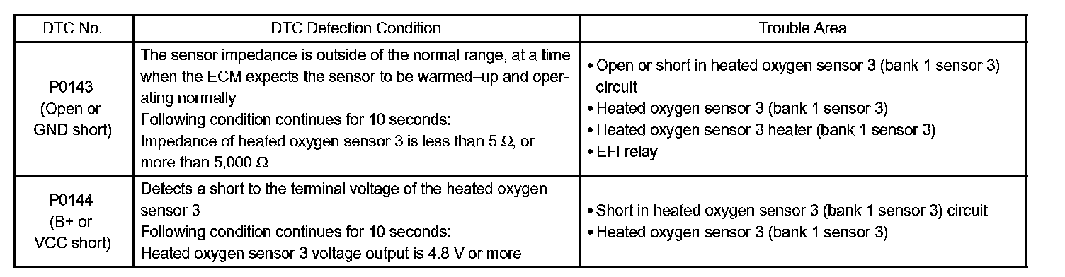DTC P0143 OXYGEN SENSOR CIRCUIT LOW VOLTAGE (BANK 1 SENSOR 3)HINT: This DTC has been added to meet the requirement for Partial Zero Emission Vehicle (PZEV).