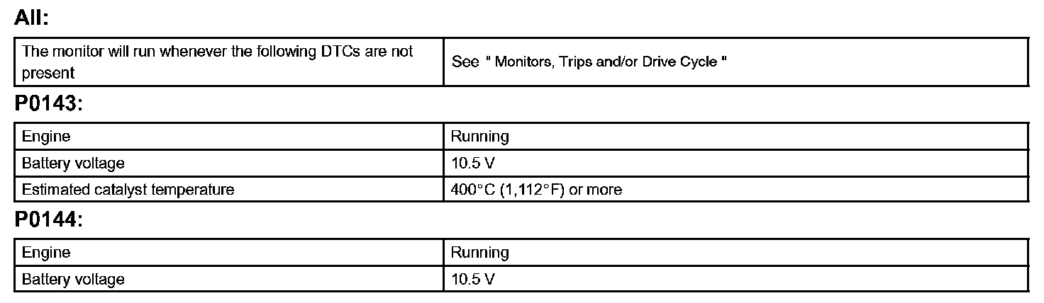 - P0142 indicates deterioration of the heated oxygen sensor 3 by the ECM calculating the impedance of the sensor 3 after the typical enabling conditions are satisfied (detected after 2 driving-cycles).