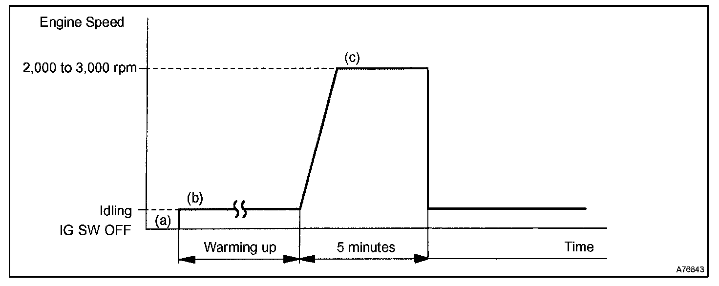 b. Start the engine and warm it up with all the accessory switches OFF.