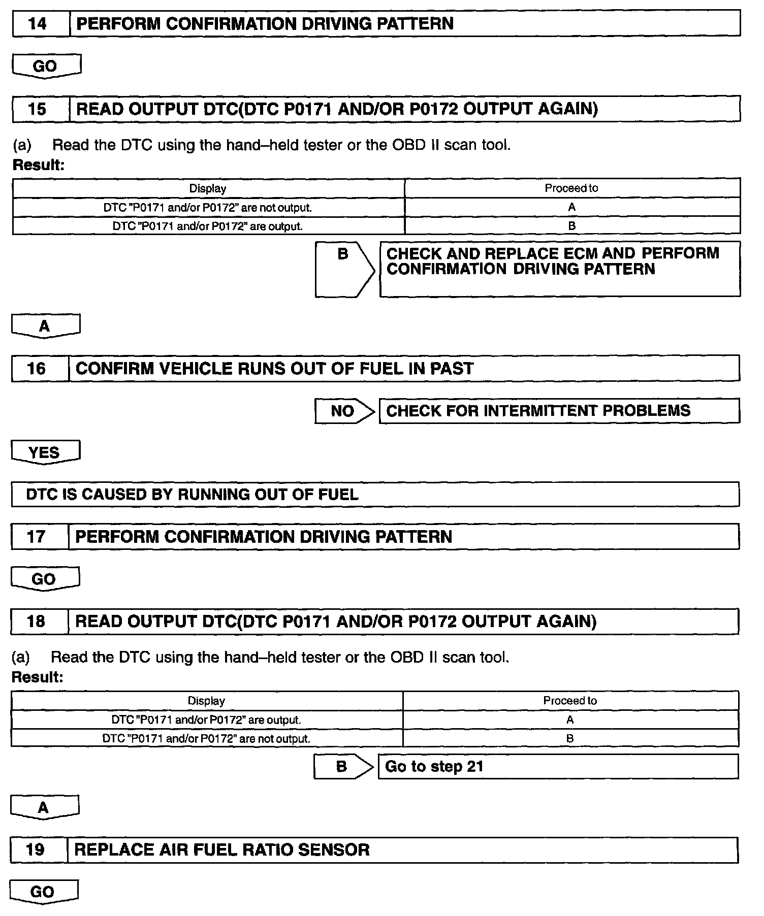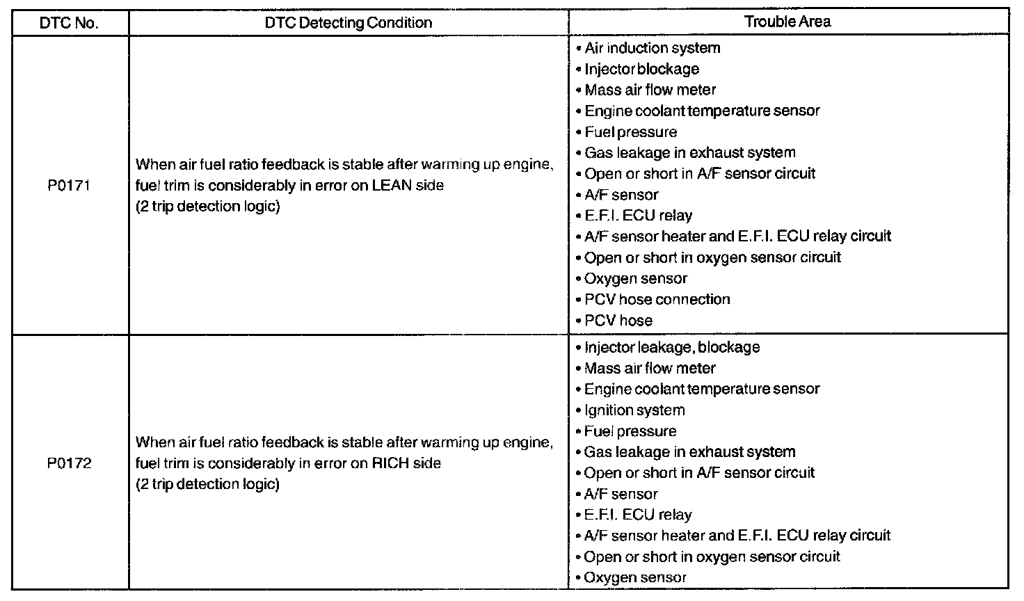 - When the DTC P0171 is recorded, the actual air-fuel ratio is on the LEAN side. When DTC P0172 is recorded, the actual air-fuel ratio is on the RICH side.
