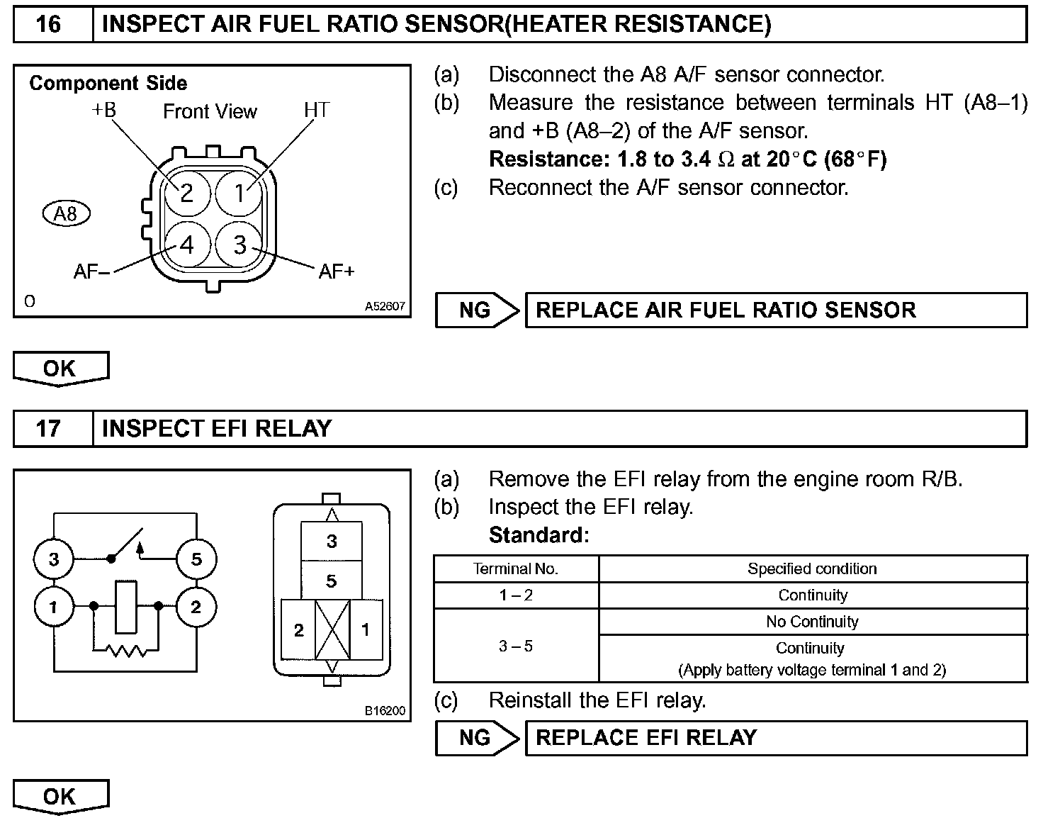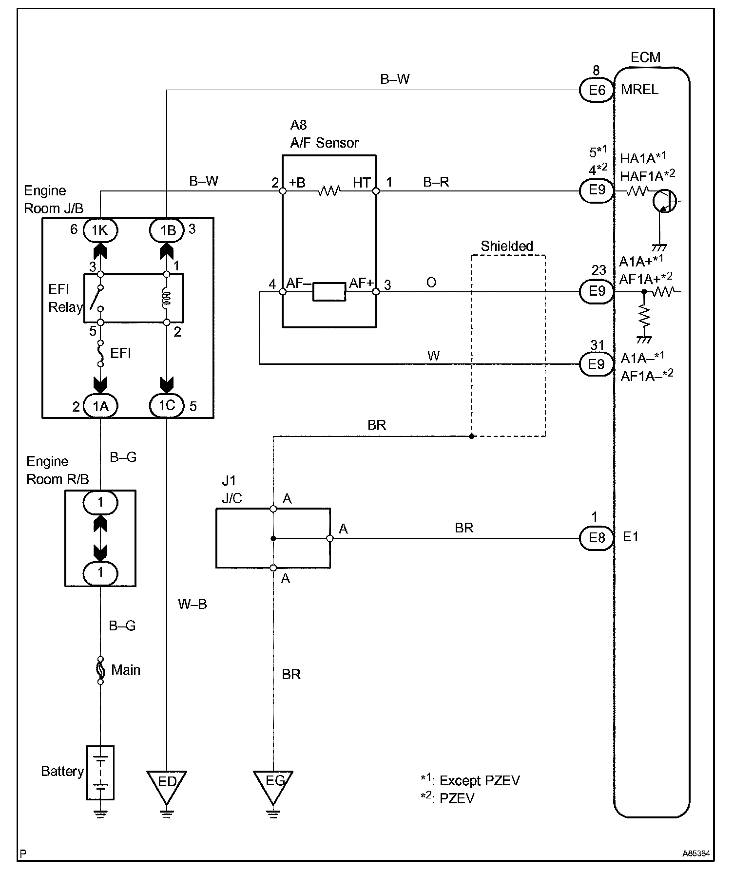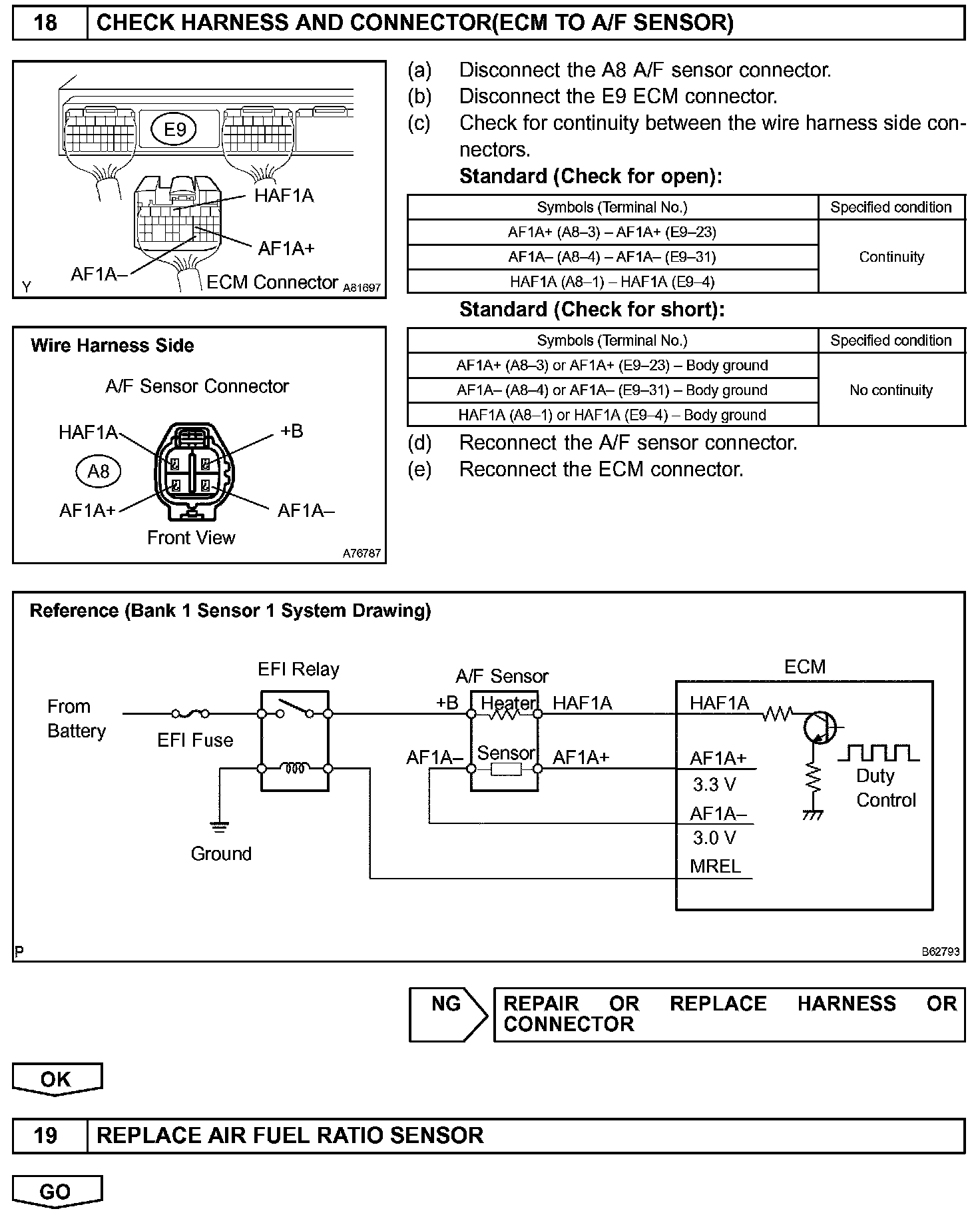 - The ECM controls the voltage of terminals AF1A+ and AF1A- of the ECM to a fixed voltage. Therefore it is impossible to confirm the A/F sensor output voltage without the hand-held tester or the OBD II scan tool.