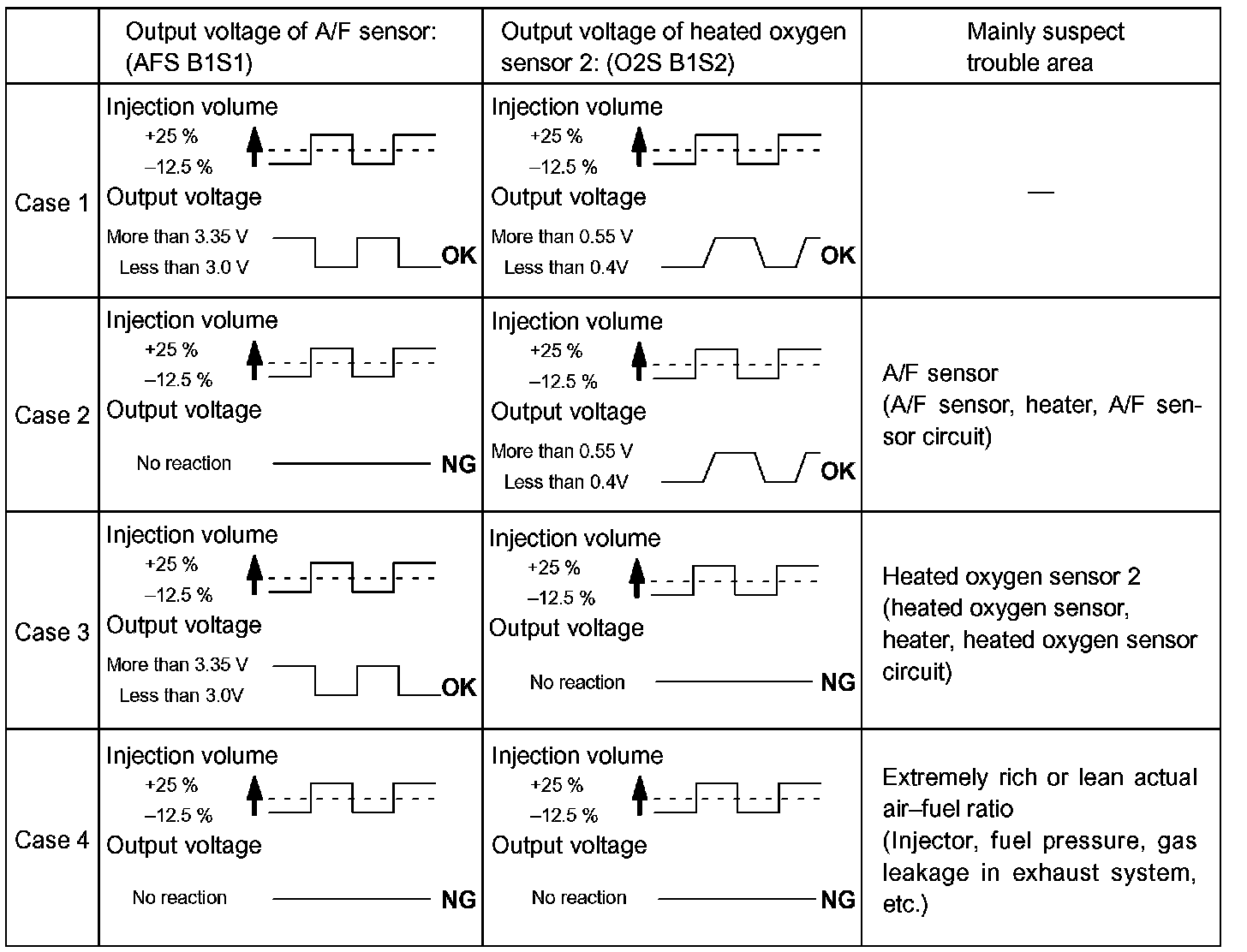 The following A/F CONTROL procedure enables to technician to check and graph the voltage outputs of both the A/F Sensor and Heated Oxygen Sensor 2.