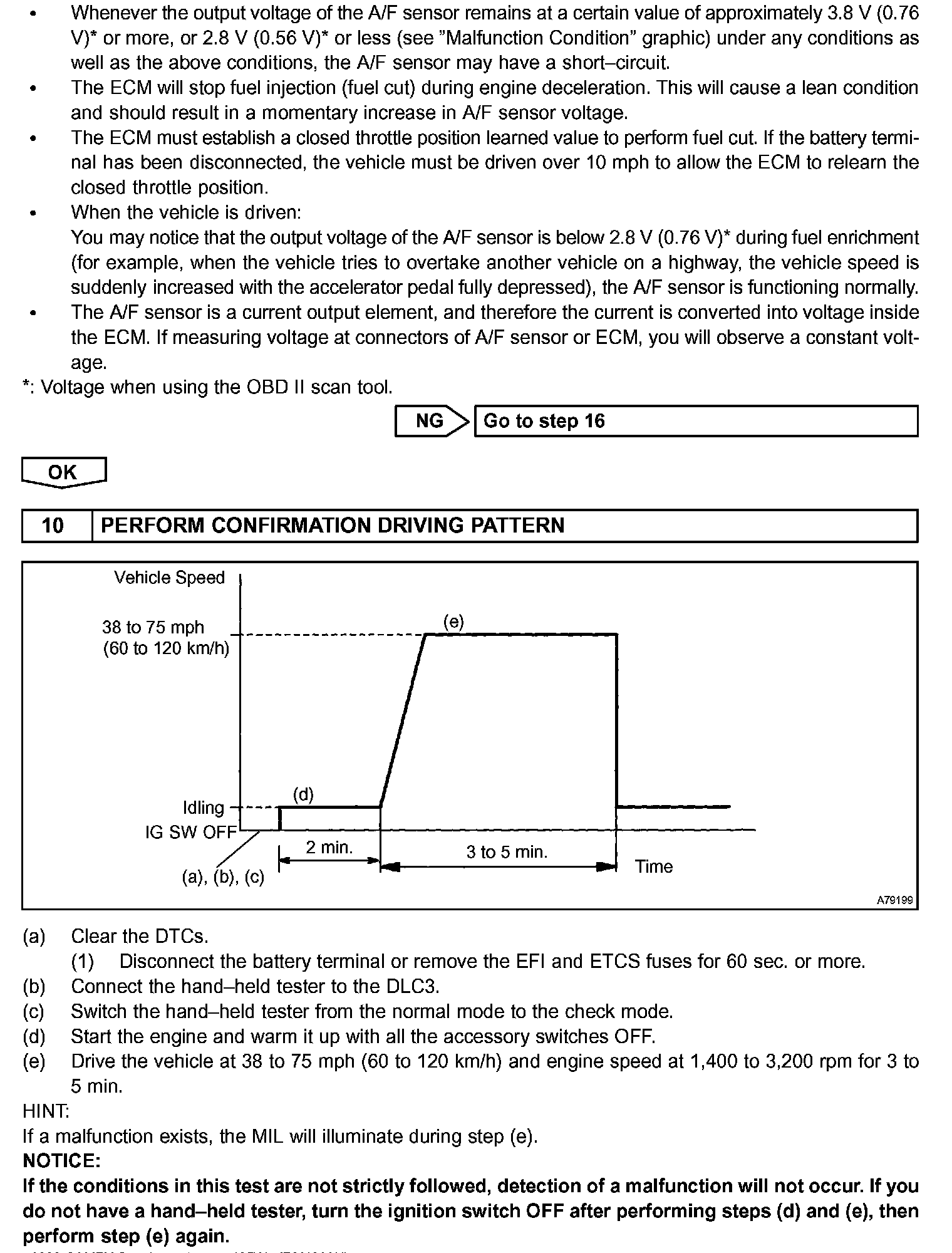 NOTICE: There is a few seconds delay in the A/F sensor output and there is about 20 second delay in the heated oxygen sensor 2 output.