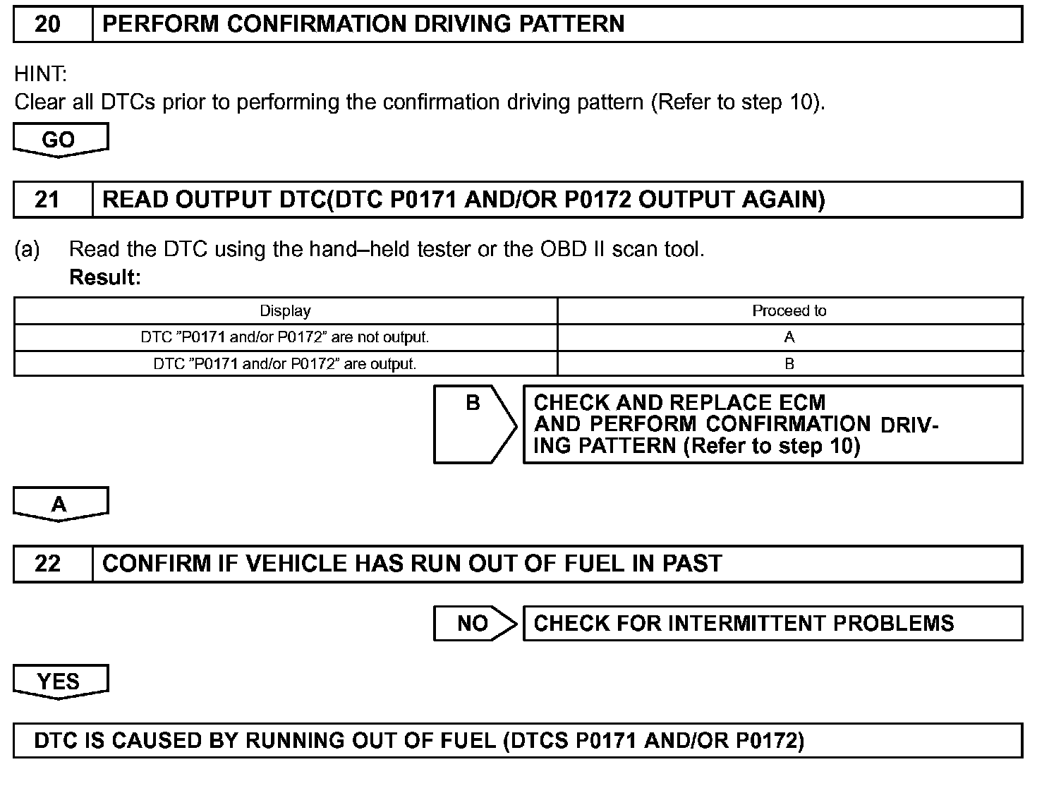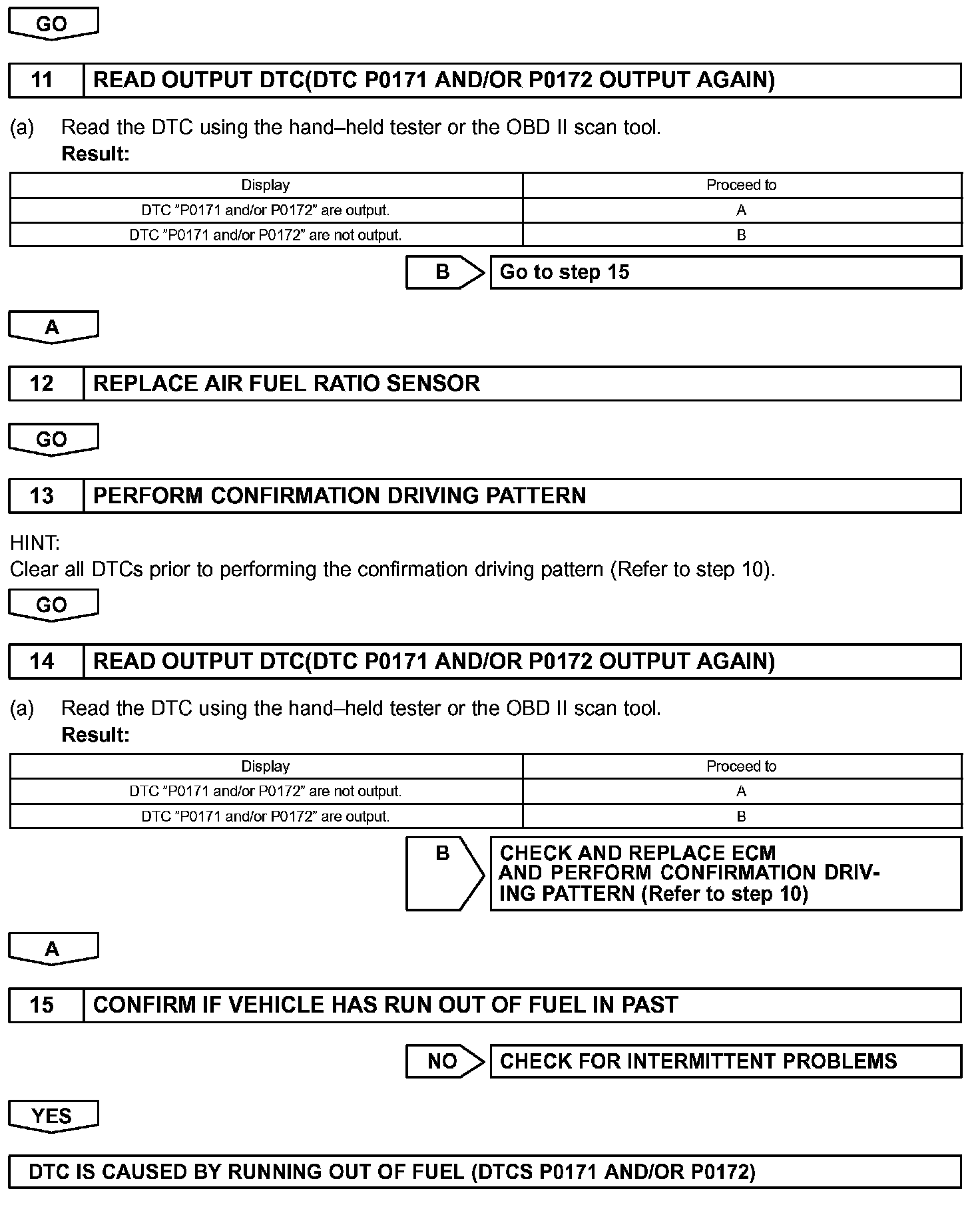 - If the vehicle runs out of fuel, the air-fuel ratio is LEAN and DTC "P0171" is recorded. The MIL then comes on.