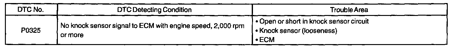 DTC P0325 KNOCK SENSOR 1 CIRCUIT (BANK 1 OR SINGLE SENSOR)CIRCUIT DESCRIPTION