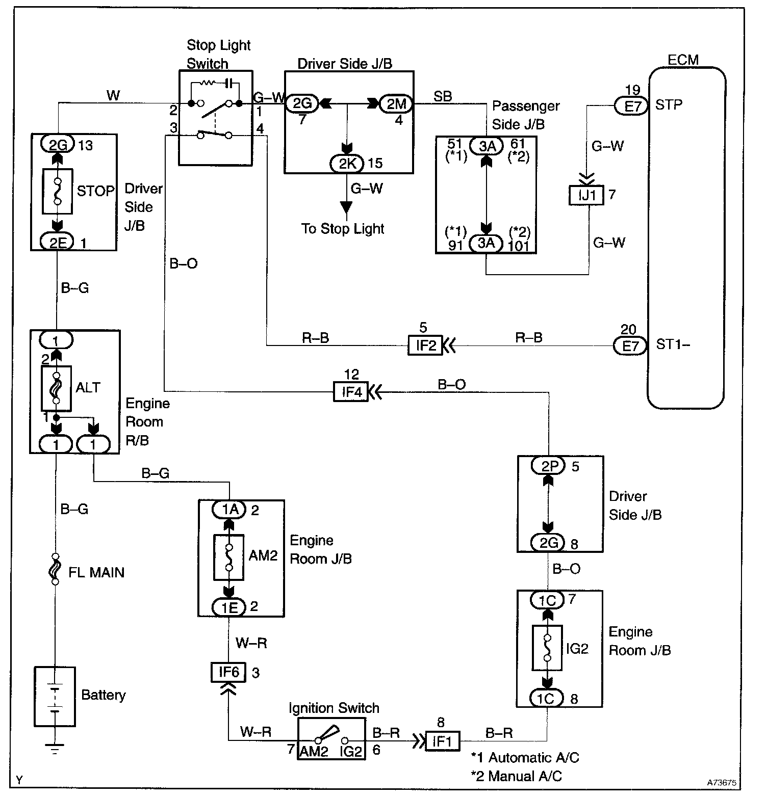 This signal is used to detect when the brakes have been applied. The STP signal voltage is the same as the voltage supplied to the stop lights.