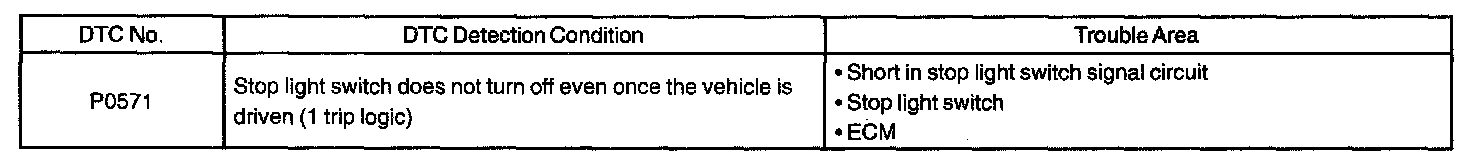 DTC P0571 BRAKE SWITCH "A" CIRCUITCIRCUIT DESCRIPTION
