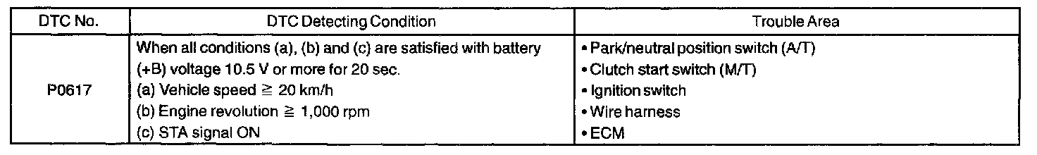 NOTE: This article contains corrected data processed from TSB# PG001-05.DTC P0617 STARTER RELAY CIRCUIT HIGH