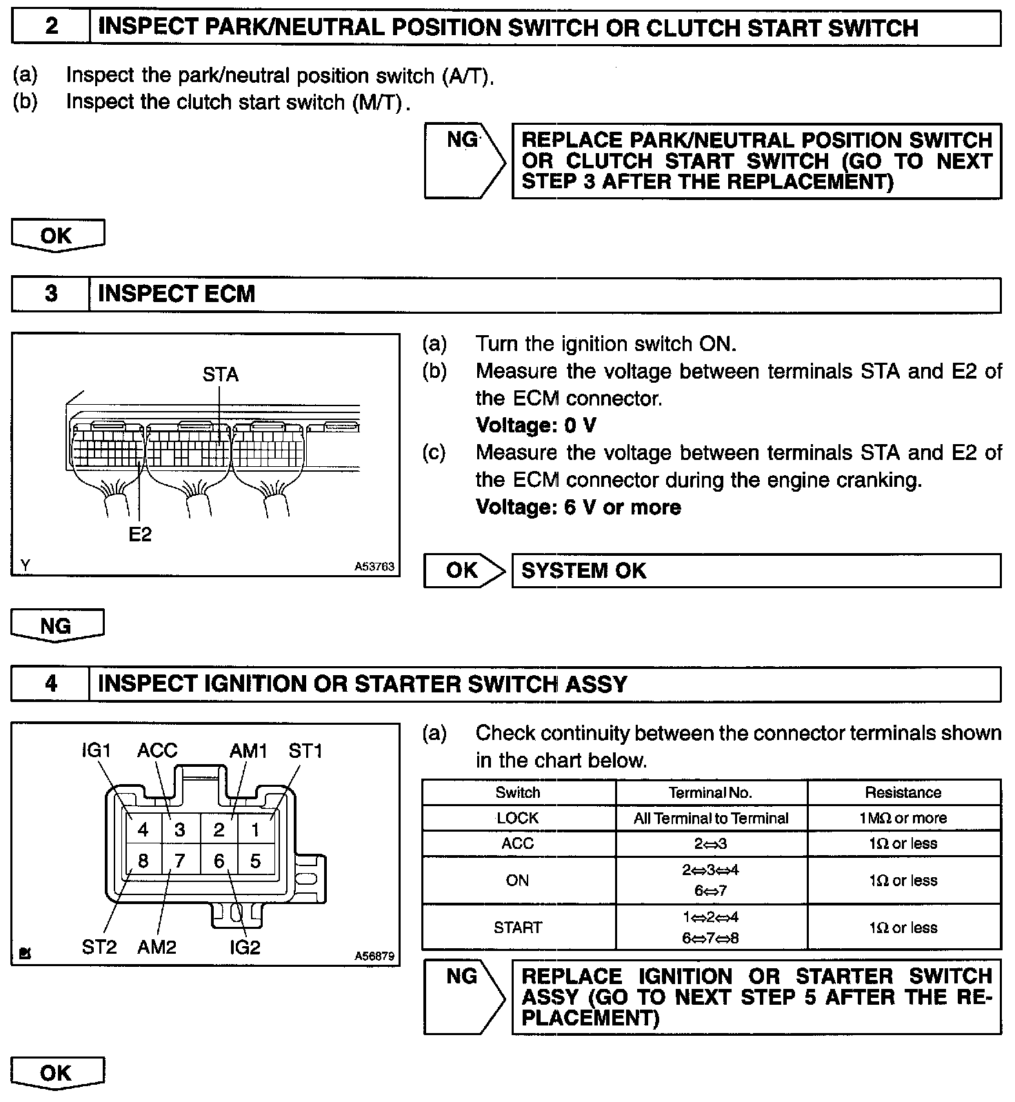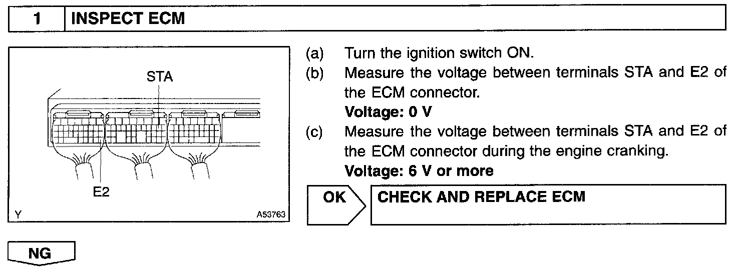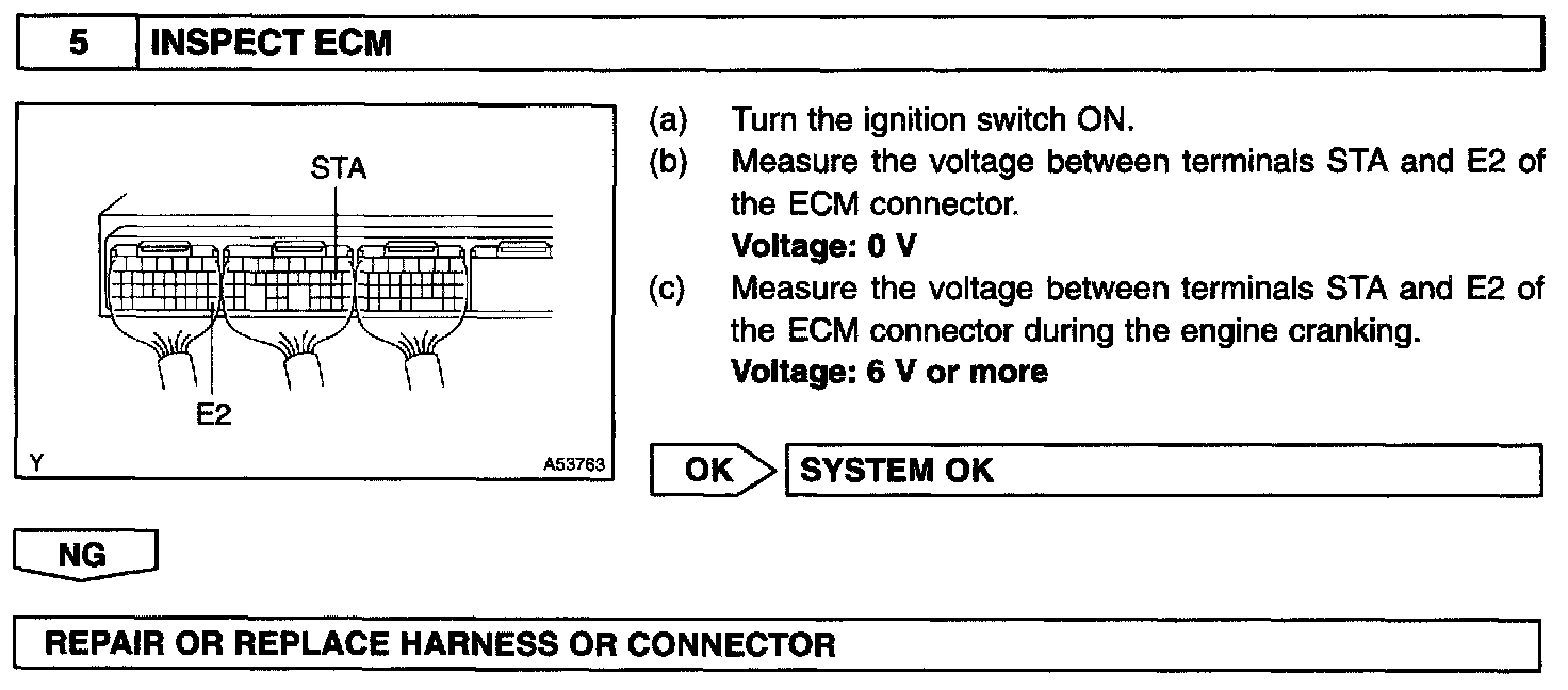 While the engine is being cranked, the battery positive voltage is applied to terminal STA of the ECM.