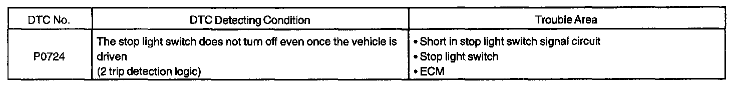 DTC P0724 BRAKE SWITCH "B" CIRCUIT HIGHCIRCUIT DESCRIPTION