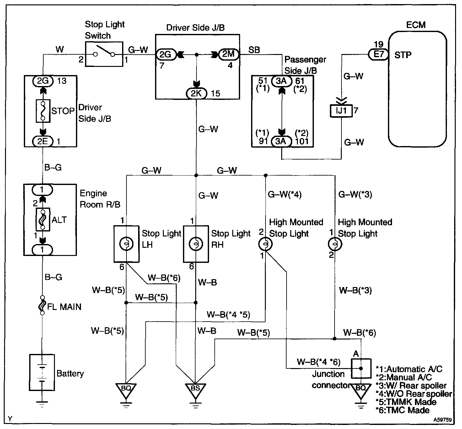 This signal is used to detect that the brakes have been applied. The STP signal voltage is the same as the one supplied to the stop lights.
