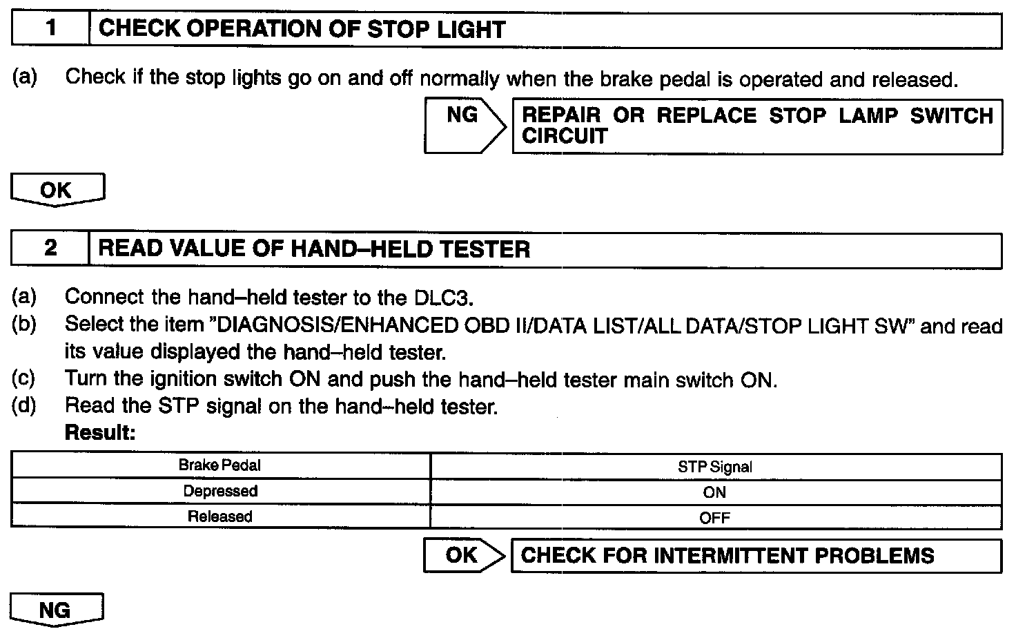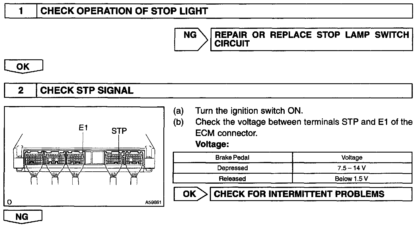 The STP signal is used mainly to control the fuel cut-off engine speed (The fuel cut-off engine speed is reduced slightly when the vehicle is braking.).